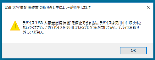 USB 大容量記憶装置の取り外し中にエラーが発生しました