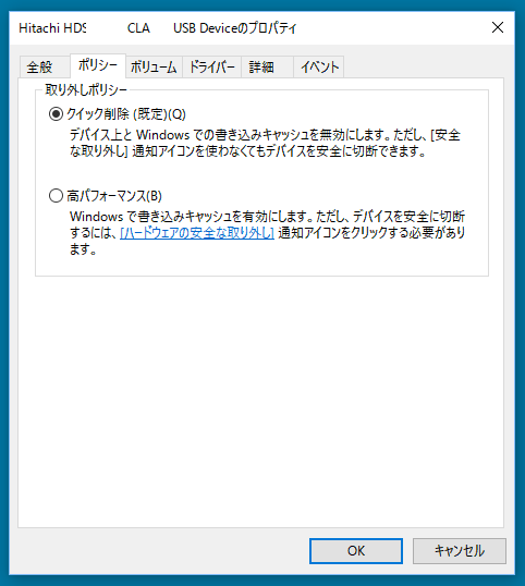 3:[クイック削除 (規定)]と[高パフォーマンス]のどちらかが選択されているので、